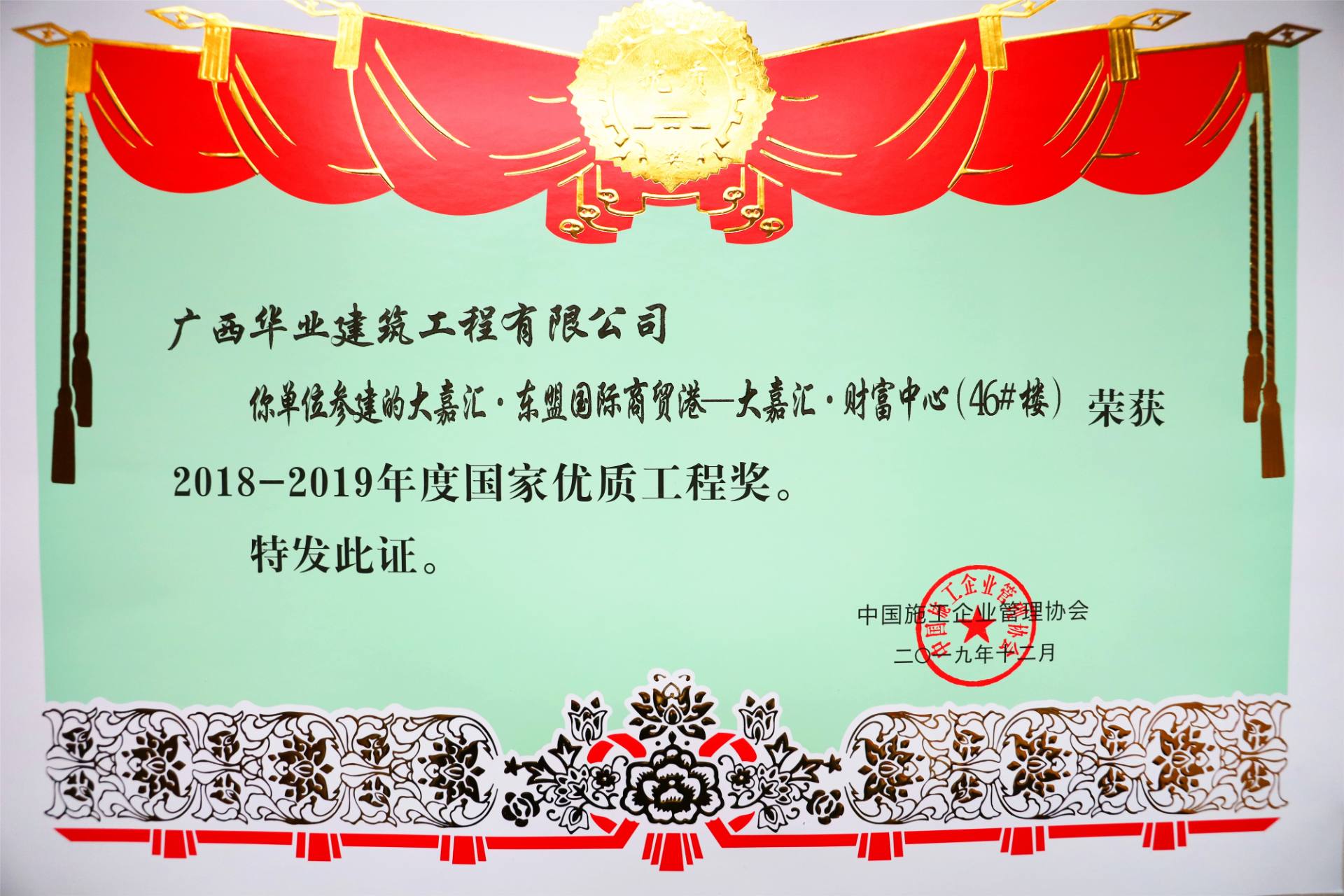 項(xiàng)目榮譽(yù):2019年全區(qū)建筑施工安全標(biāo)準(zhǔn)化觀摩項(xiàng)目 -